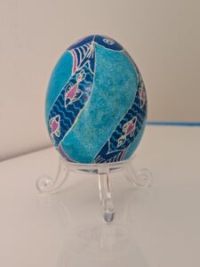 Par ses couleurs et ses motifs, Immensité apaise l’âme — vaste comme l’océan, douce comme un poisson qui y ondule, elle évoque la paix sans fin qui nous est offerte.